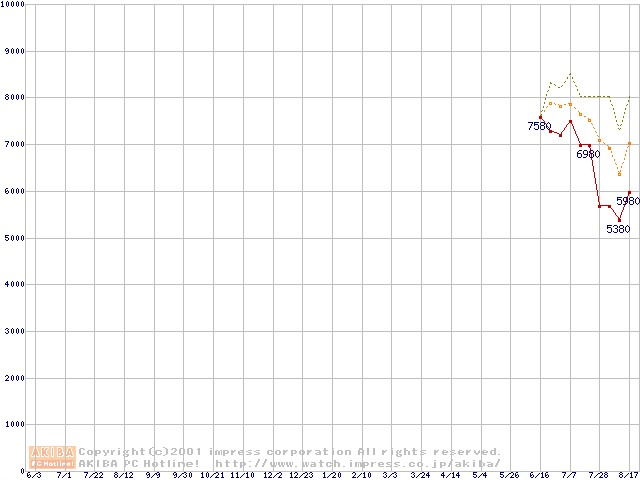 Socket 370 (PGA,FSB 100MHz,L2 64KB)の最安値推移
