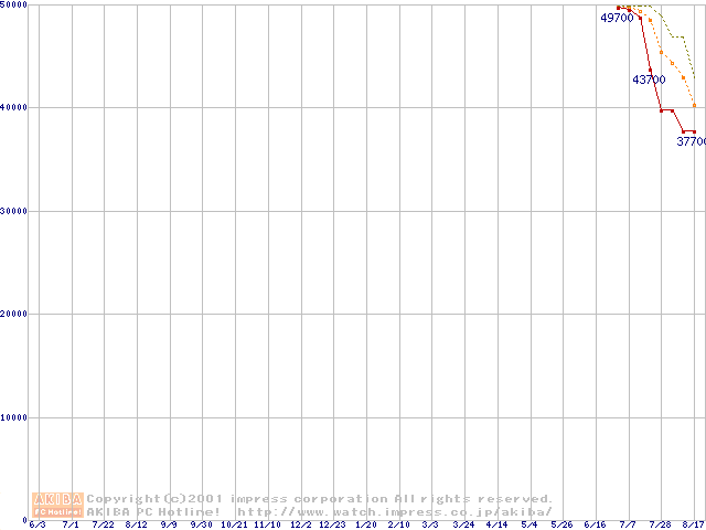 Socket 370 (FC-PGA2,FSB 133MHz,L2 512KB)の最安値推移