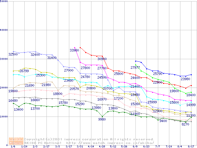 | [↓次グラフ]: | Socket A (PGA,FSB 200MHz,L2 64KB)の最安値推移 |