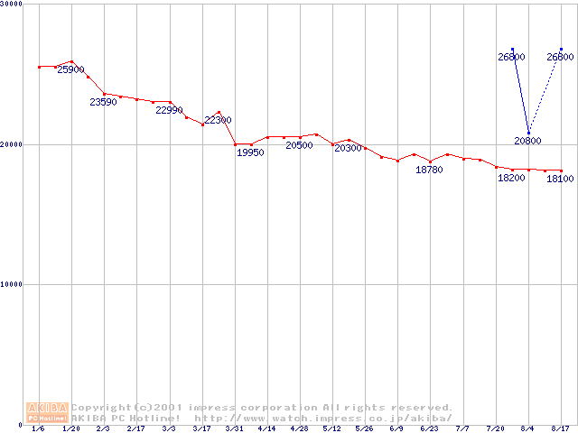 | [↓次グラフ]: | Slot 1 (SECC2,FSB 133MHz,L2 256KB)の最安値推移 |