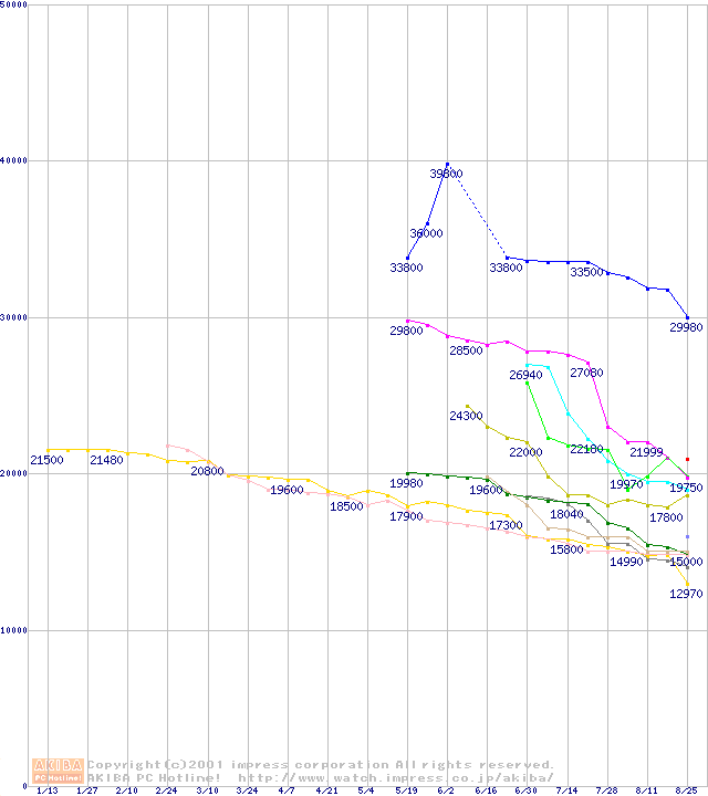 HDD 60GB以上(5,400rpmクラス)の最安値推移