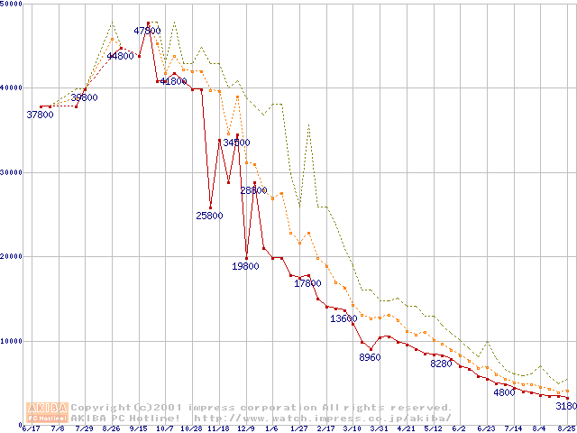 メモリ主要製品の最安値推移