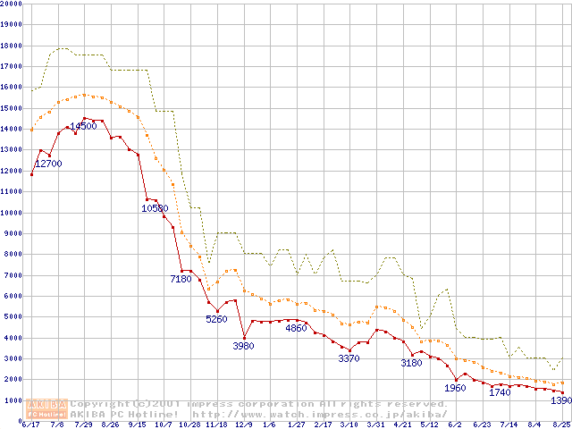 メモリ主要製品の最安値推移