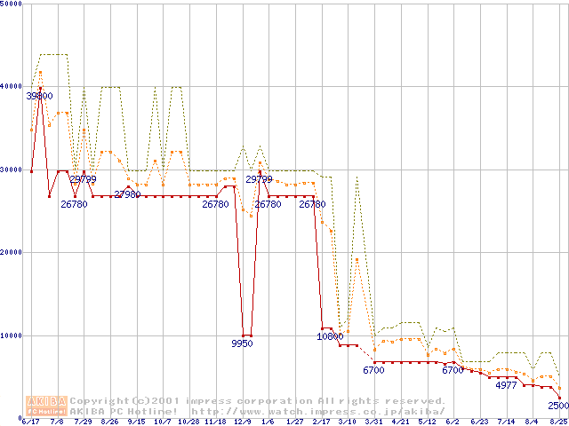 PC800 DRDRAM RIMMの最安値推移