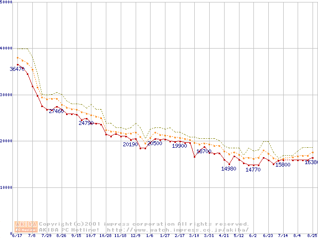Pentium III 750MHz FC-PGA リテールパッケージの価格推移