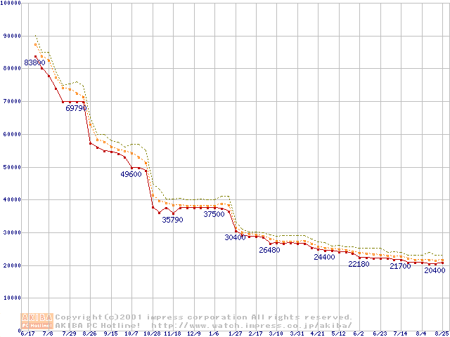 Pentium III 933MHz FC-PGA リテールパッケージの価格推移