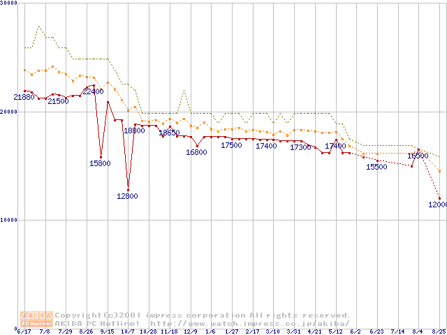 Pentium III 667MHz SECC2 リテールパッケージの価格推移