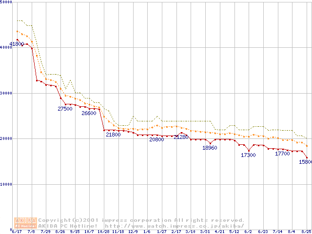 Pentium III 800EBMHz SECC2 リテールパッケージの価格推移