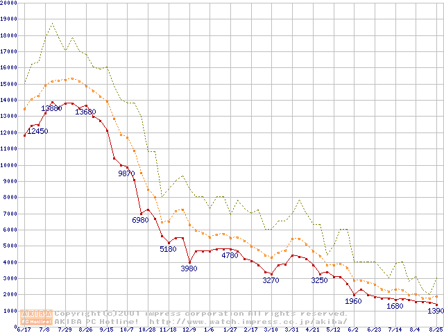 PC100 SDRAM DIMM CasLatency=2の最安値推移