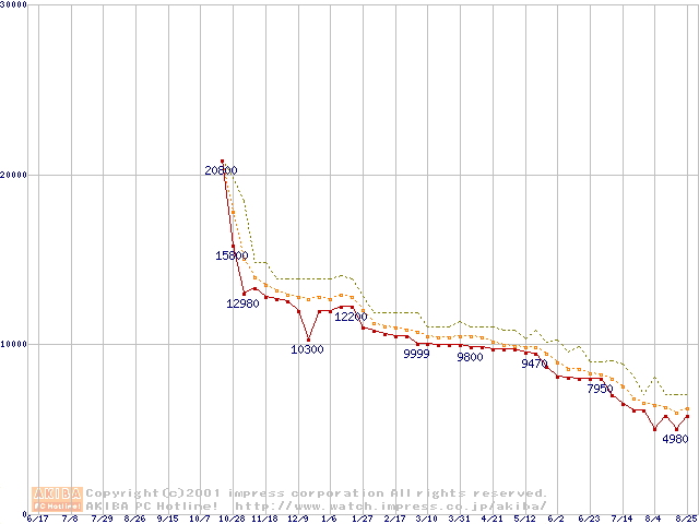 Celeron 733MHz FC-PGA リテールパッケージの価格推移
