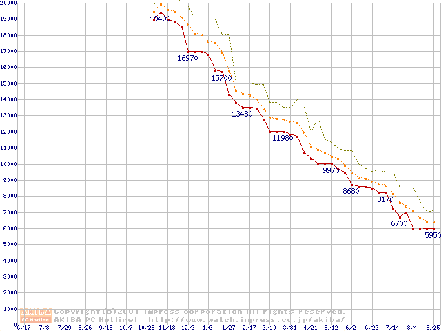 Celeron 766MHz FC-PGA リテールパッケージの価格推移