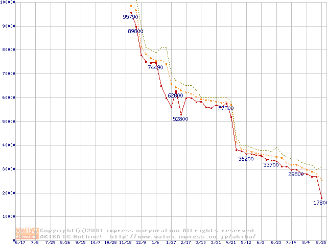 Pentium 4 1.4GHz リテールパッケージ(128MB)の価格推移