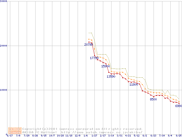 Celeron 800MHz FC-PGA リテールパッケージの価格推移