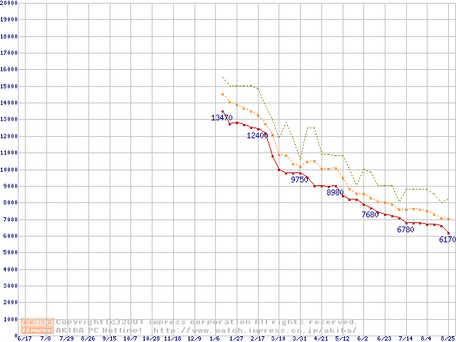 Socket A (PGA,FSB 200MHz,L2 64KB)の最安値推移