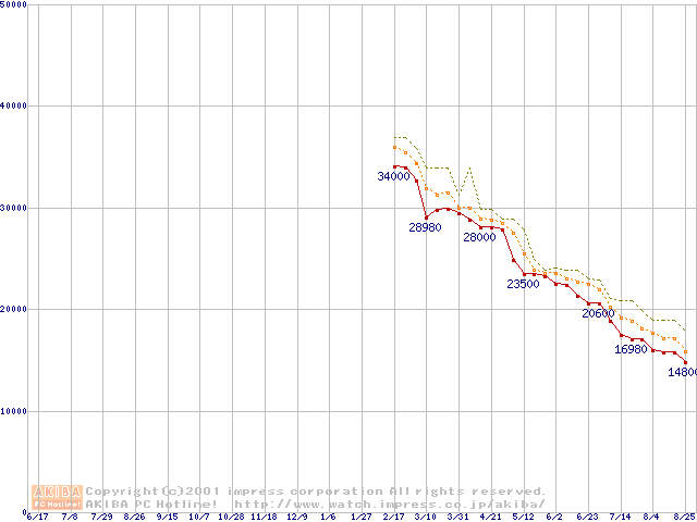 Athlon 1.2GHz(FSB200) (Thunderbird) リテールパッケージの価格推移