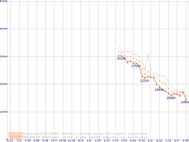 Athlon 1.2GHz(FSB266) (Thunderbird) リテールパッケージの価格推移