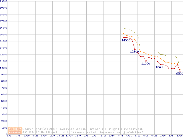 Duron 900MHz リテールパッケージの価格推移