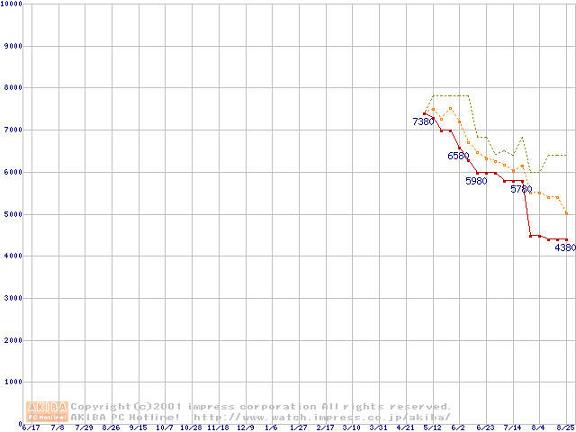 Socket 370 (PGA,FSB 100MHz,L2 64KB)の最安値推移