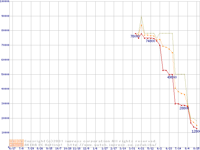 PC2100(DDR266) DDR SDRAM DIMMの最安値推移