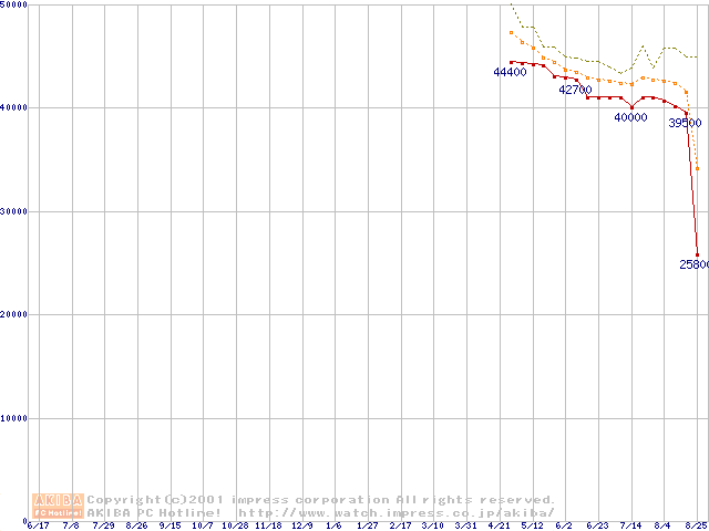 Pentium 4 1.7GHz リテールパッケージ(RIMMなし)の価格推移