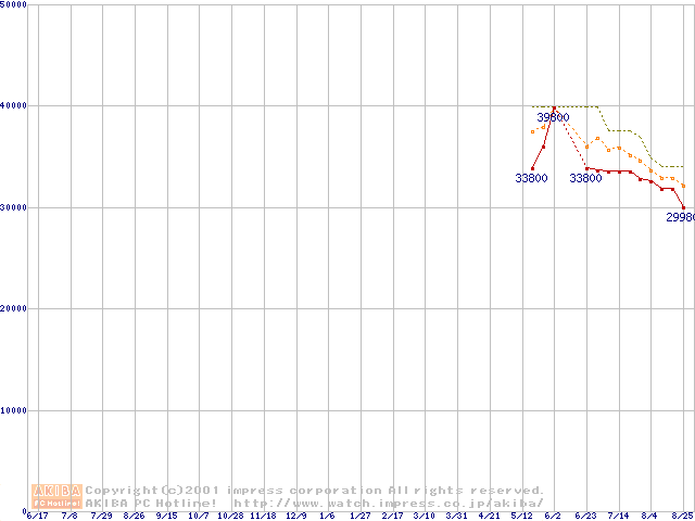 DiamondMax 536DX (5,400rpm Ultra ATA/100 33.3GB/Platter)の最安値推移