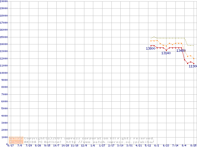 DiamondMax 536DX (5,400rpm Ultra ATA/100 33.3GB/Platter)の最安値推移