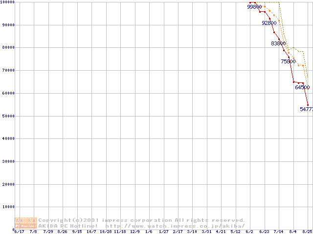 PC800 DRDRAM RIMM ECC対応の最安値推移