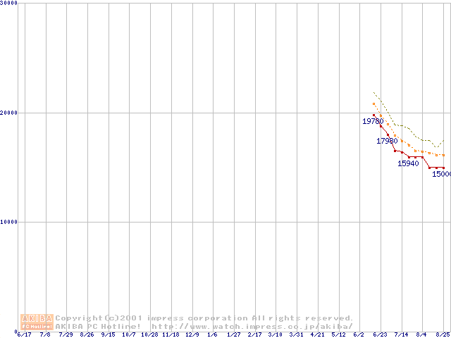 HDD主要製品(最安値1万5千円~2万円未満)の最安値推移