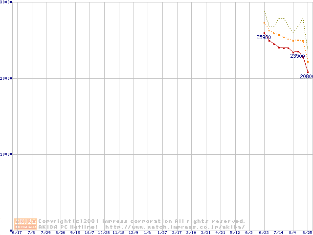 Socket A (Palomino,PGA,FSB 266MHz,L2 256KB)の最安値推移