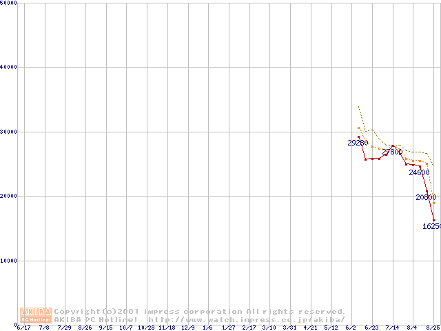 Athlon 1.4GHz(FSB266) (Thunderbird) リテールパッケージの価格推移