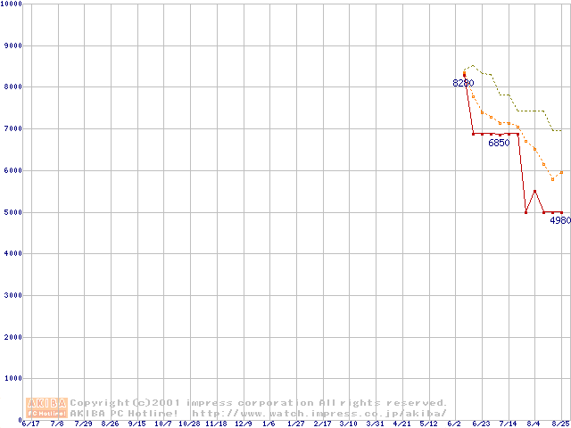 Socket 370 (PGA,FSB 133MHz,L2 64KB)の最安値推移