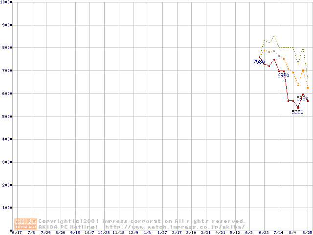 VIA C3 750AMHz リテールパッケージの価格推移