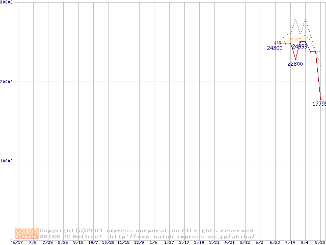 Pentium 4 1.4GHz リテールパッケージ(RIMMなし)の価格推移