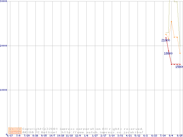 PC133 SDRAM DIMM CasLatency=3 ECC対応 Registeredタイプの最安値推移