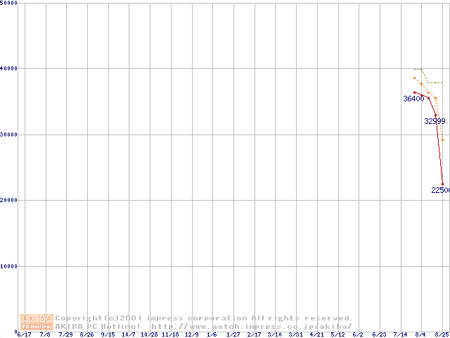 Pentium 4 1.6GHz リテールパッケージ(RIMMなし)の価格推移