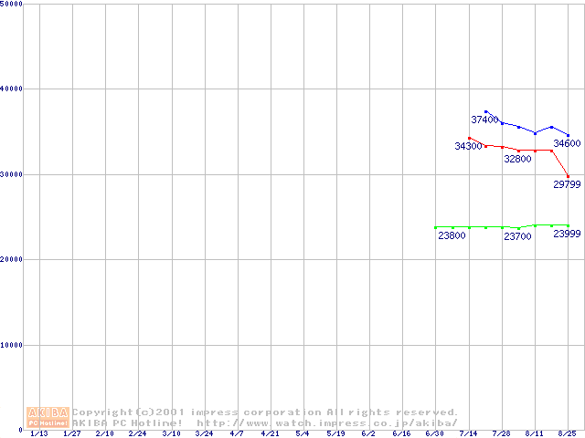 | [↑前グラフ]: | Socket 370 (FC-PGA2,FSB 133MHz,L2 512KB)の最安値推移 |