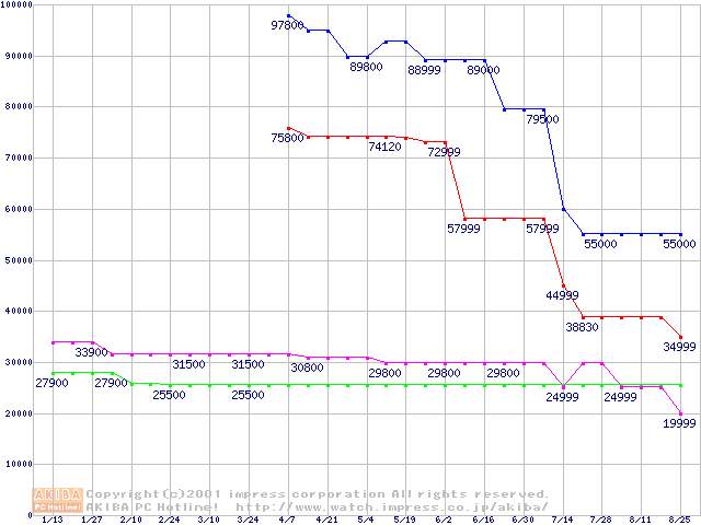 | [↑前グラフ]: | Slot 1 (SECC2,FSB 100MHz,L2 256KB)の最安値推移 |