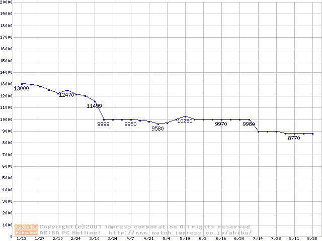 | [↑前グラフ]: | Fireball Plus AS (7,200rpm UltraATA/100 2MB)の最安値推移 |