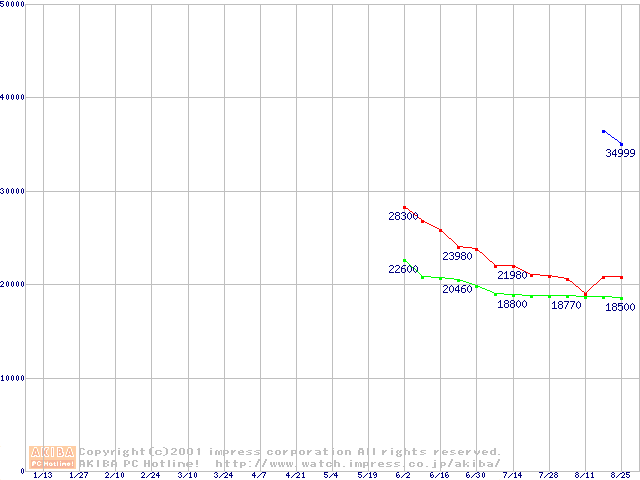 | [↑前グラフ]: | Deskstar 40GV (5,400rpm Ultra ATA/100)の最安値推移 |