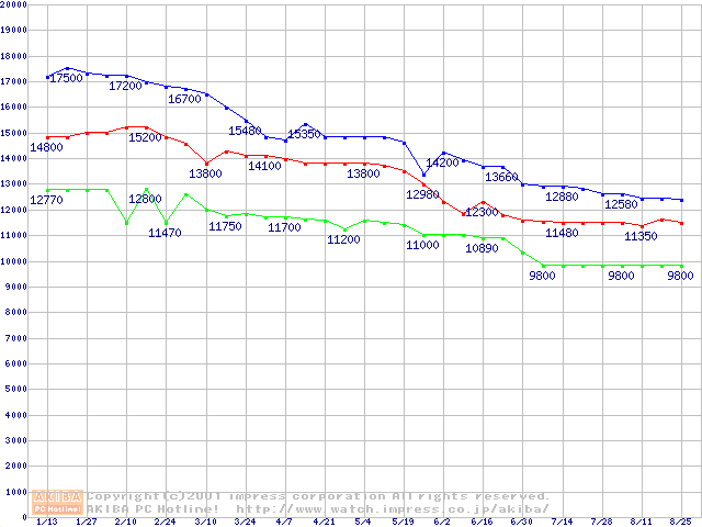 | [↑前グラフ]: | WD Caviar (7,200rpm Ultra ATA/100)の最安値推移 |