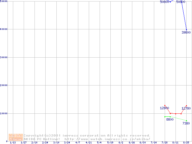 | [↓次グラフ]: | PC800 DRDRAM RIMMの最安値推移 |