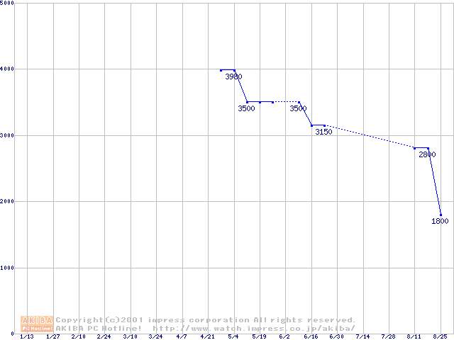 | [↑前グラフ]: | PC700 DRDRAM RIMMの最安値推移 |