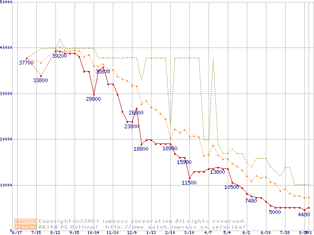 メモリ主要製品の最安値推移