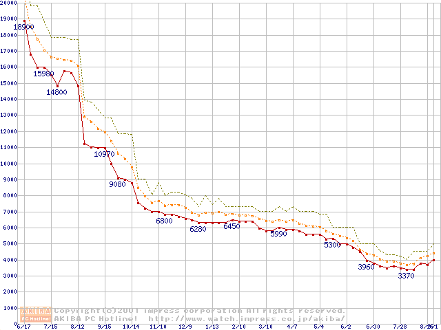 Socket A (PGA,FSB 200MHz,L2 64KB)の最安値推移