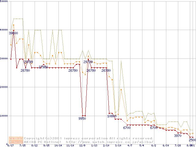 PC800 DRDRAM RIMMの最安値推移