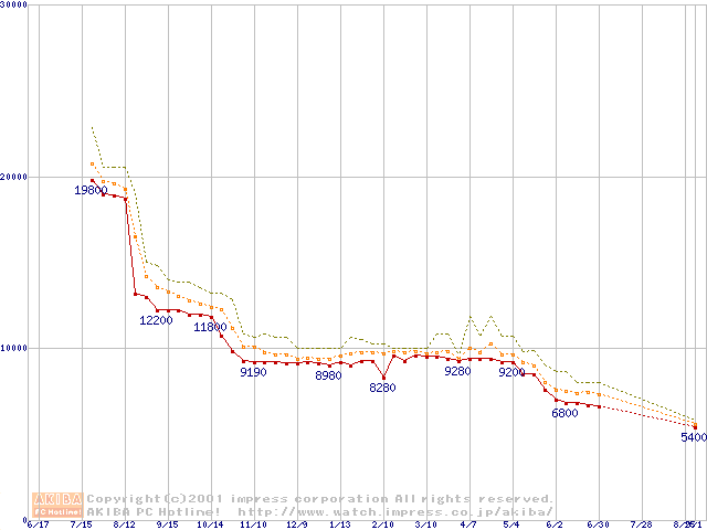 Celeron 667MHz FC-PGA リテールパッケージの価格推移