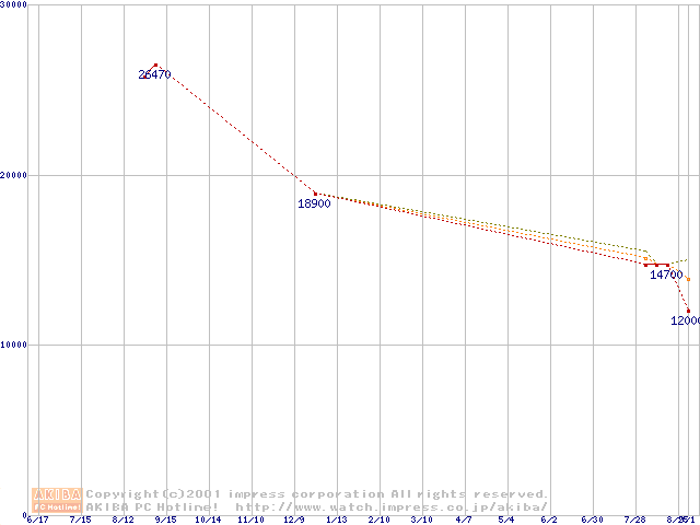 Slot 1 (SECC2,FSB 100MHz,L2 256KB)の最安値推移
