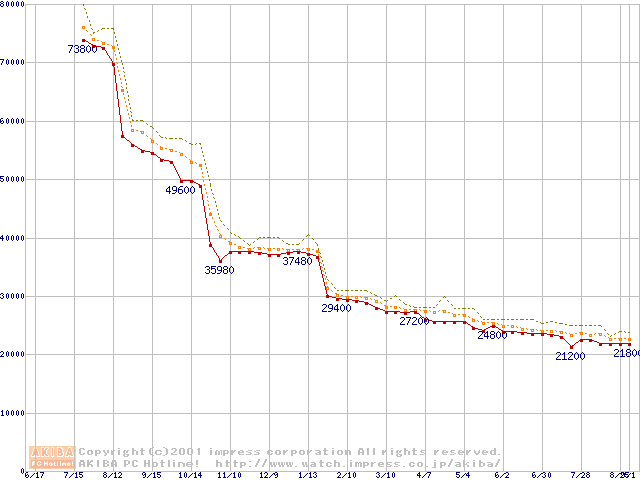 Pentium III 933MHz SECC2 リテールパッケージの価格推移