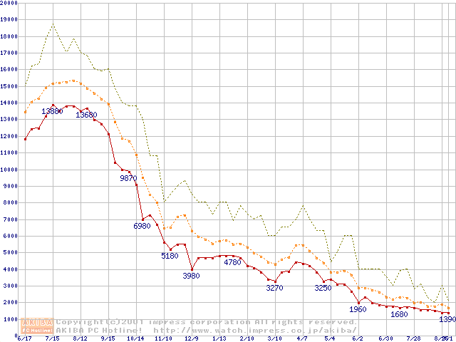 PC100 SDRAM DIMM CasLatency=2の最安値推移