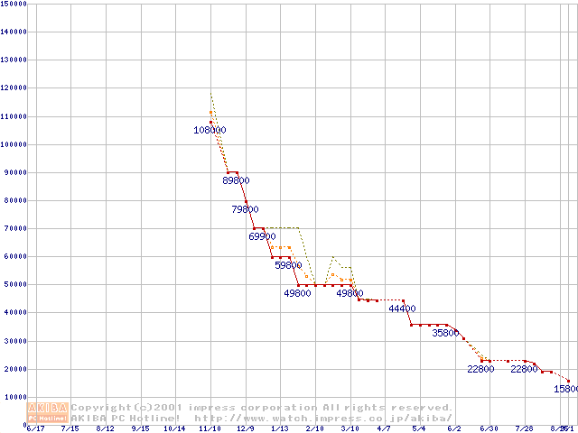 Socket 423 (PGA,L2 256KB)の最安値推移